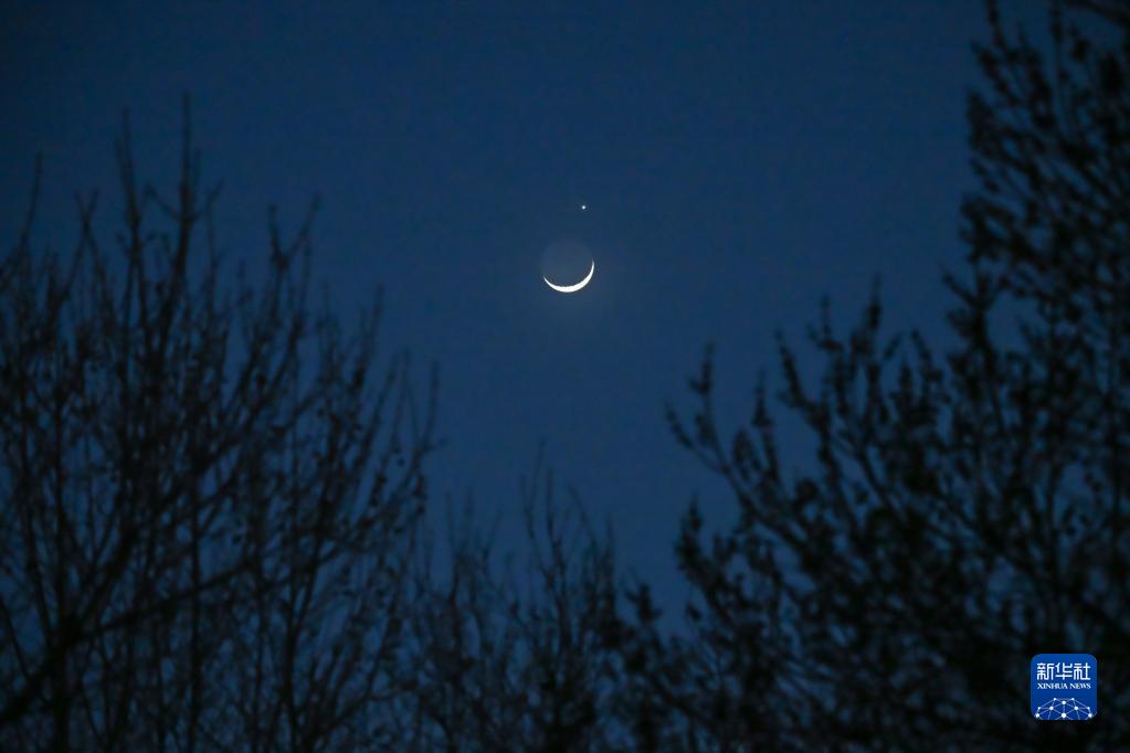 當晚,一輪彎彎的月牙與太陽(yáng)系最明亮的行星在天空上演一場(chǎng)奇妙的天象——月掩金星。
