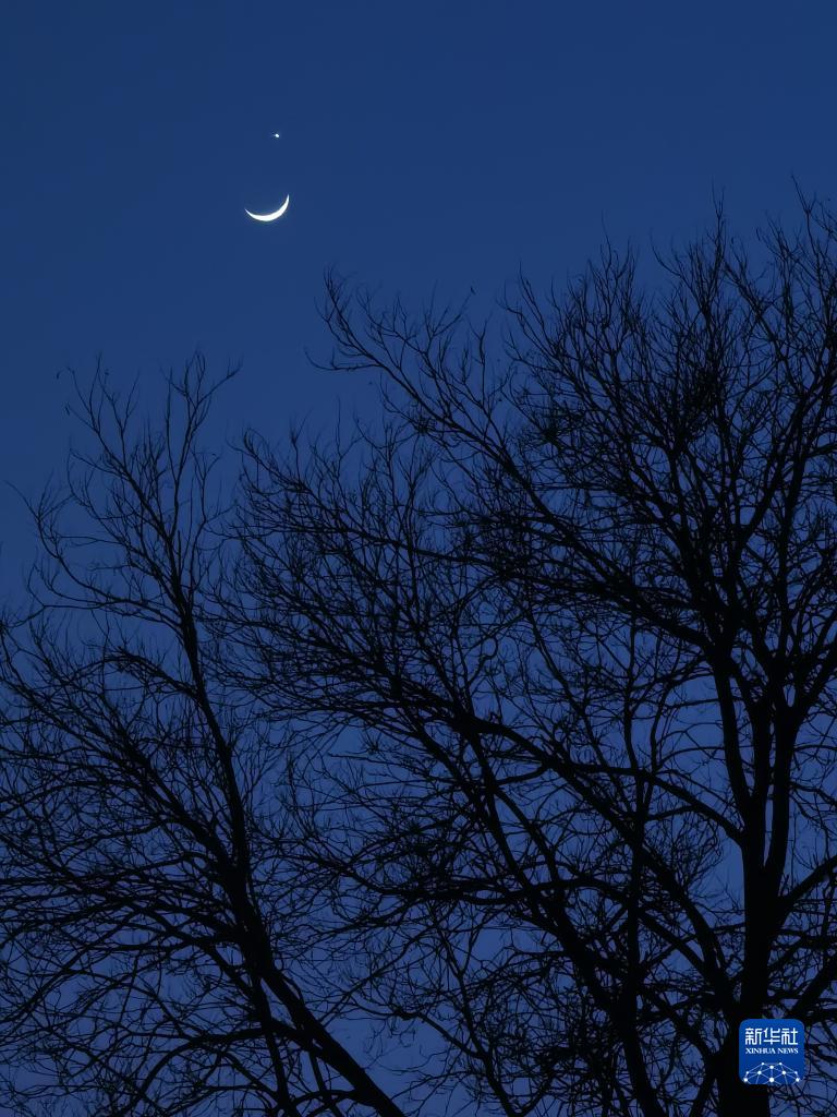 這是3月24日在北京拍攝的月掩金星天象(手機照片)。