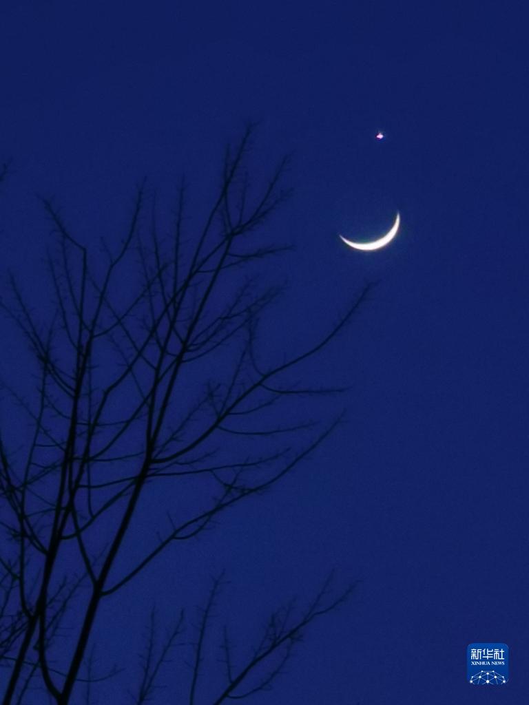 這是3月24日在北京拍攝的月掩金星天象(手機照片)。