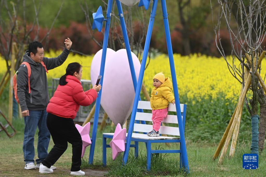 3月25日,游客在八里店鎮移沿山生態(tài)景區的油菜花海內游玩。
