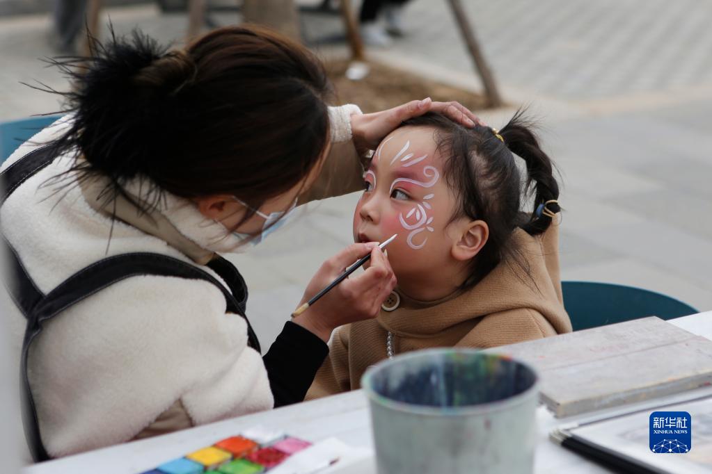 3月24日,一名女孩在銀基動(dòng)物王國體驗彩繪。