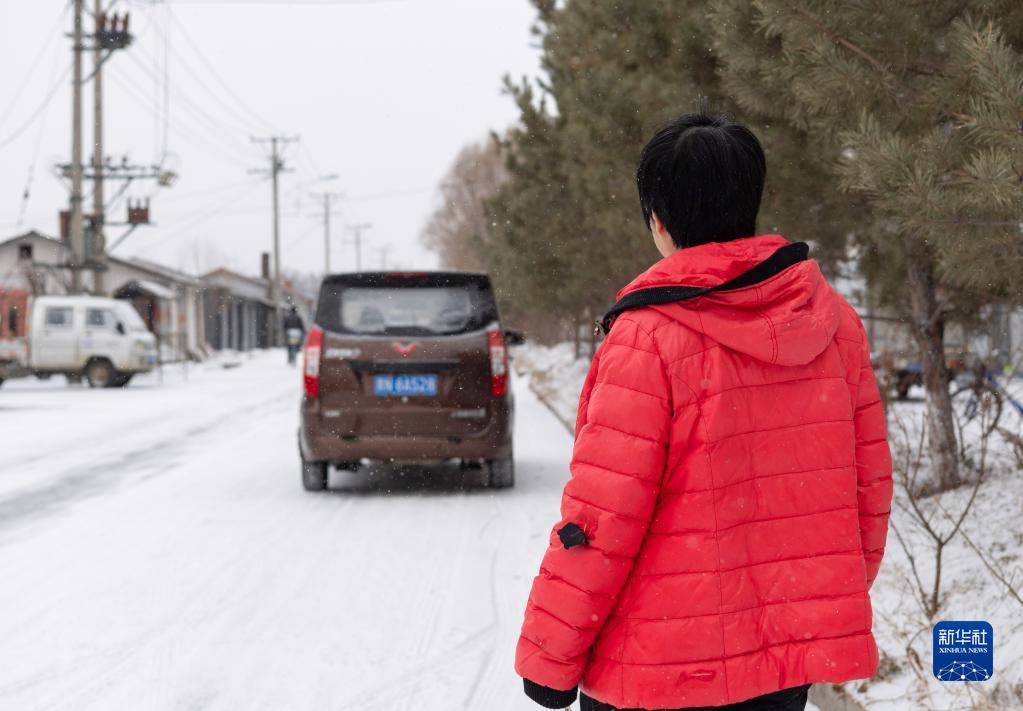 3月22日,在中國龍江森工集團沾河林業(yè)局有限公司,朱彩芹目送家人駕車(chē)進(jìn)山。她的丈夫王學(xué)堂、兒子王劉洋、兒媳徐盼將在她工作了30年的彩芹瞭望塔上開(kāi)啟新一年的森林防火瞭望工作。