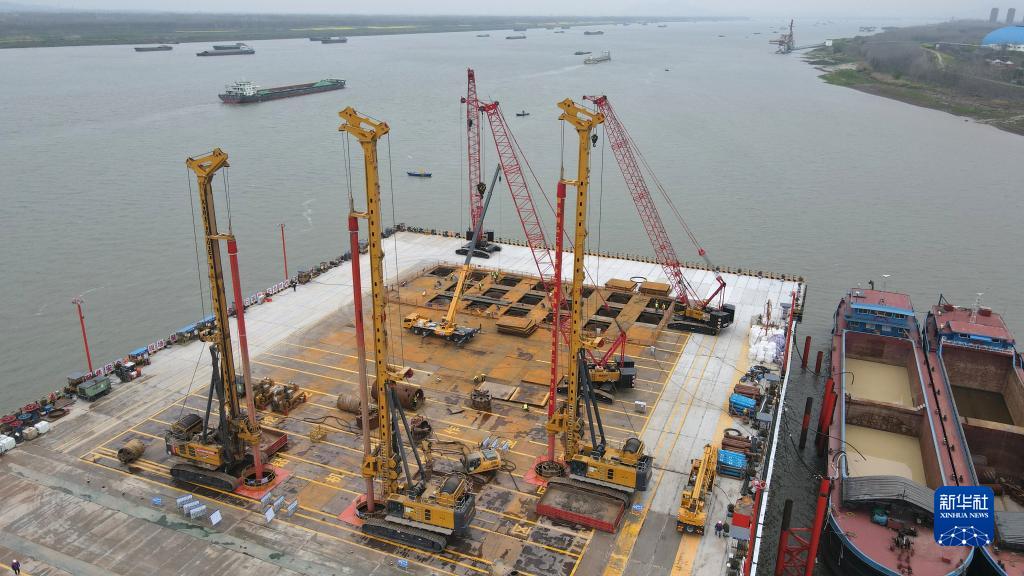 這是中鐵大橋局池州長(cháng)江公鐵大橋首個(gè)主墩開(kāi)鉆現場(chǎng)(3月25日攝,無(wú)人機照片)。