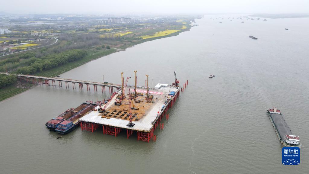 這是中鐵大橋局池州長(cháng)江公鐵大橋首個(gè)主墩開(kāi)鉆現場(chǎng)(3月25日攝,無(wú)人機照片)。