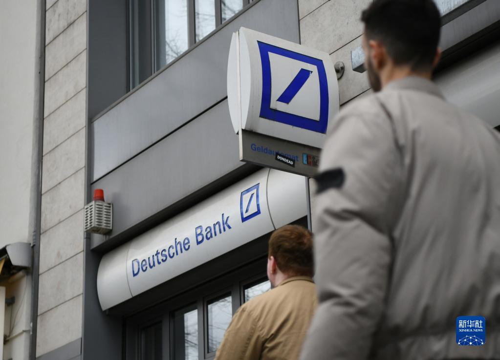 3月25日,在德國柏林街頭,行人經(jīng)過(guò)一家德意志銀行網(wǎng)點(diǎn)。