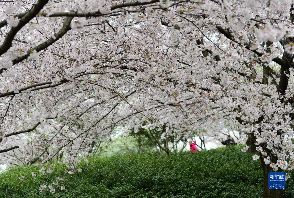 3月25日,游客在江蘇無(wú)錫紅沙灣生態(tài)園欣賞櫻花。