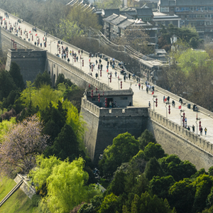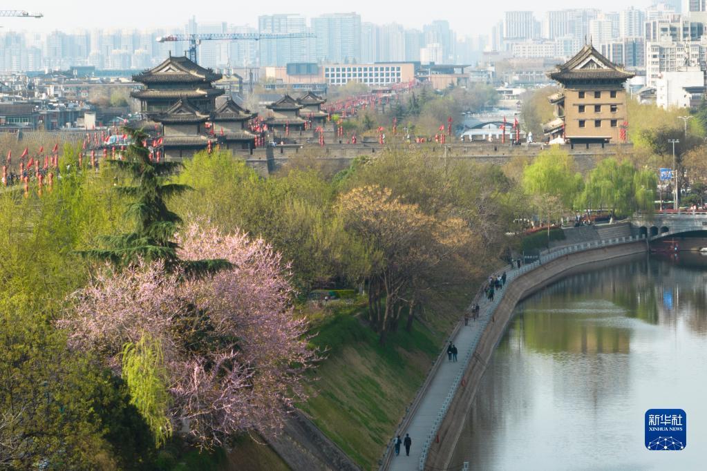 近日,陜西西安明城墻旁春意漸濃,吸引不少市民游客前來(lái)踏青。