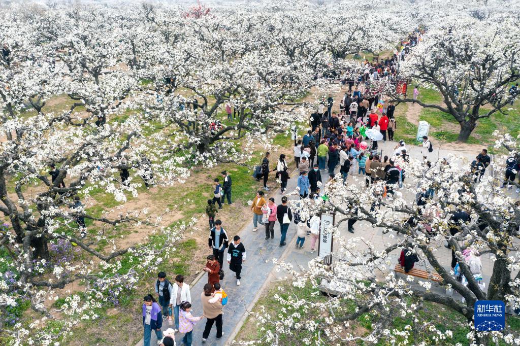近日,安徽省宿州市碭山縣50萬(wàn)畝梨樹(shù)進(jìn)入盛花期,豐富多彩的活動(dòng)在梨園舉行,吸引游客前來(lái)賞花踏春。