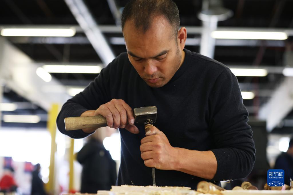 3月25日,在法國梅斯舉行的第十屆國際殘疾人職業(yè)技能競賽中,最終獲得銅牌的中國選手吳向東正在參加木雕比賽。