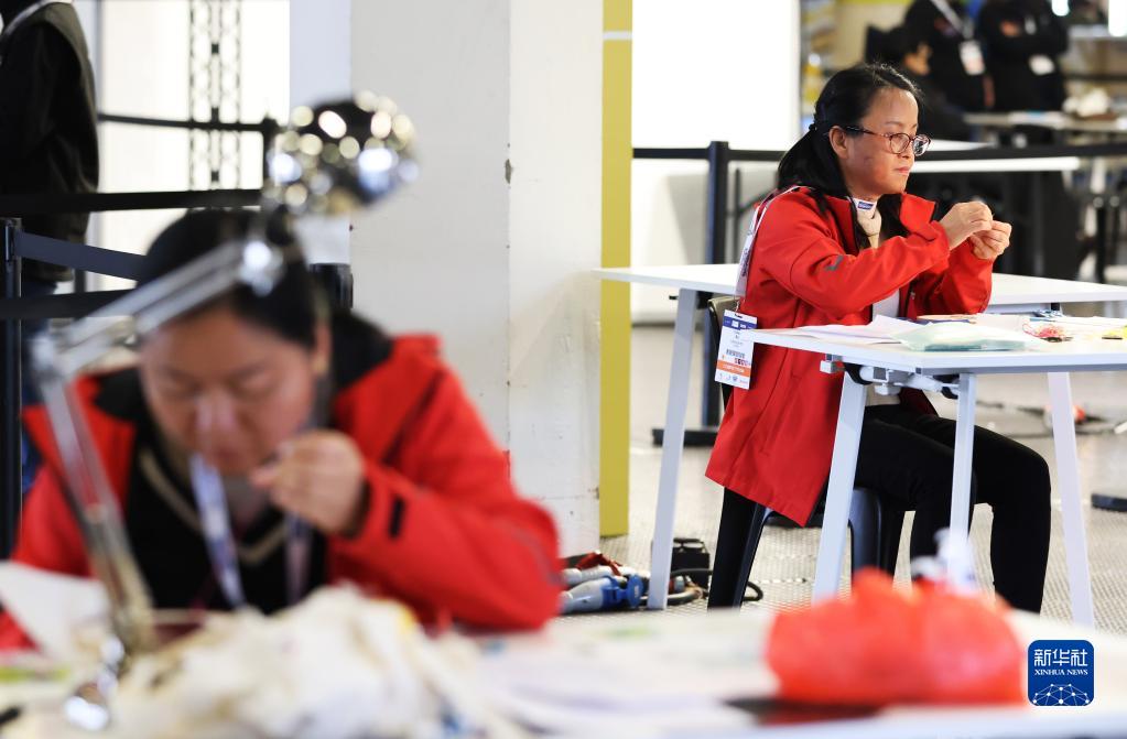 3月25日,在法國梅斯舉行的第十屆國際殘疾人職業(yè)技能競賽中,最終獲得冠軍的中國選手布云秀(右)參加刺繡比賽。