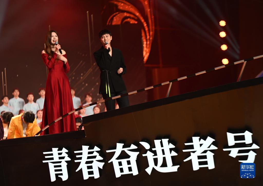 3月26日,當選為第十一屆中國大學(xué)生電視節青春代言人的秦俊杰(右)和沈夢(mèng)辰在演唱歌曲《我們的歌》。