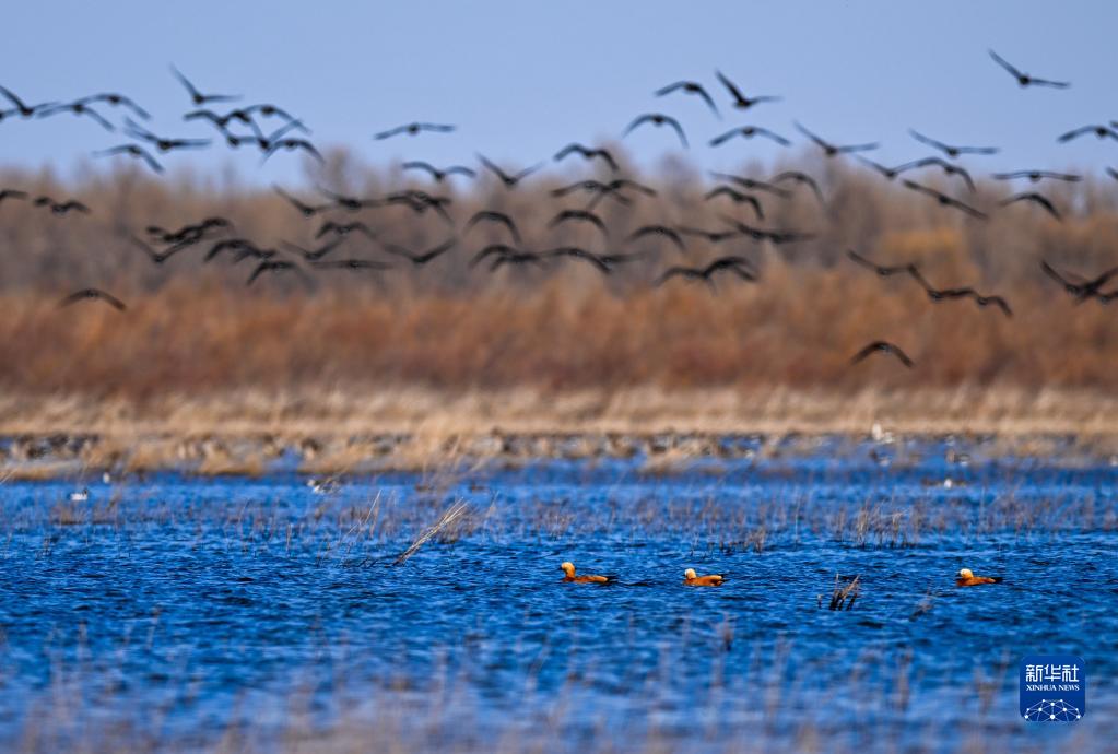 近日,天氣轉暖,冰雪消融,大批北歸候鳥(niǎo)來(lái)到內蒙古通遼市奈曼旗孟家段國家濕地公園覓食。天鵝、大雁、鸕鶿等各類(lèi)候鳥(niǎo)聚集在此,給春日的濕地公園增添了勃勃生機。