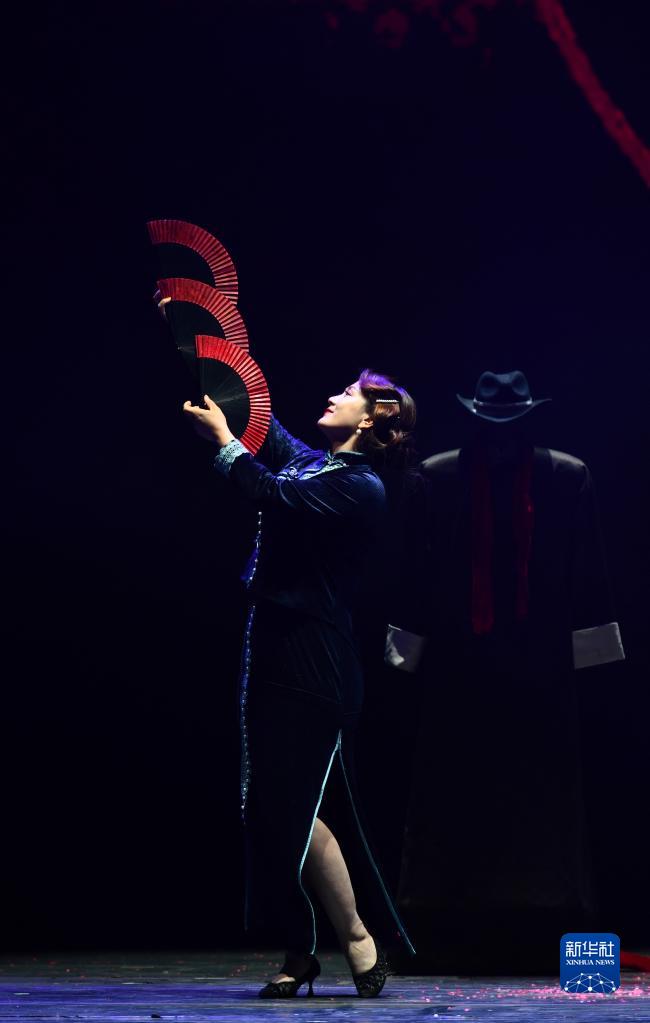 3月27日晚,在位于山東省濟南市的山東劇院,演員表演魔術(shù)節目《扇變》。