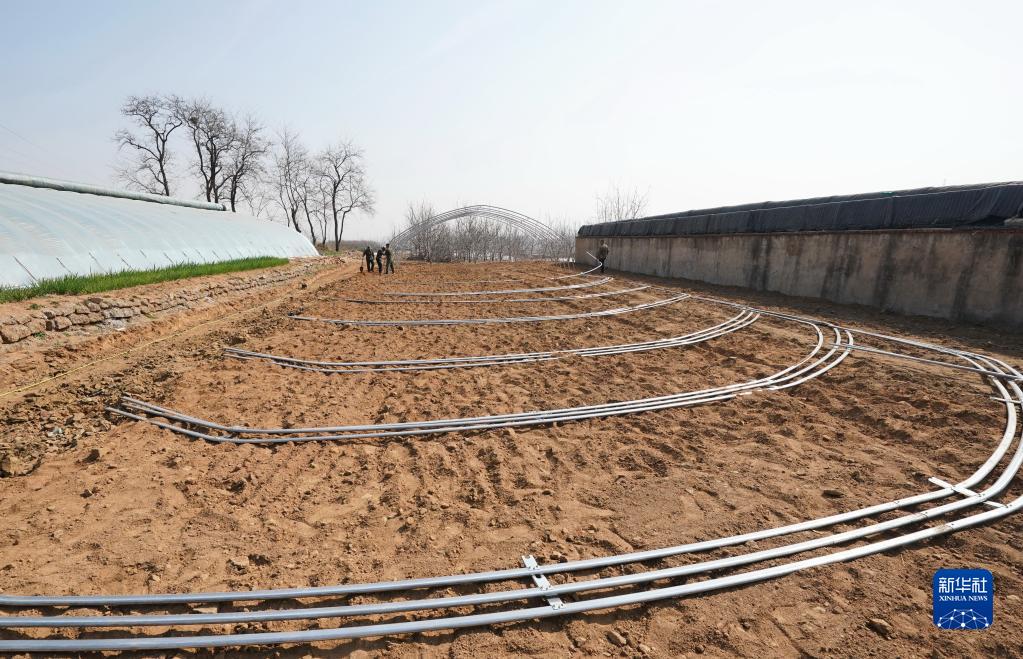 3月28日,工人在秦皇島市海港區海陽(yáng)鎮青石山村為準備開(kāi)辦家庭農場(chǎng)的農民建設大棚。
