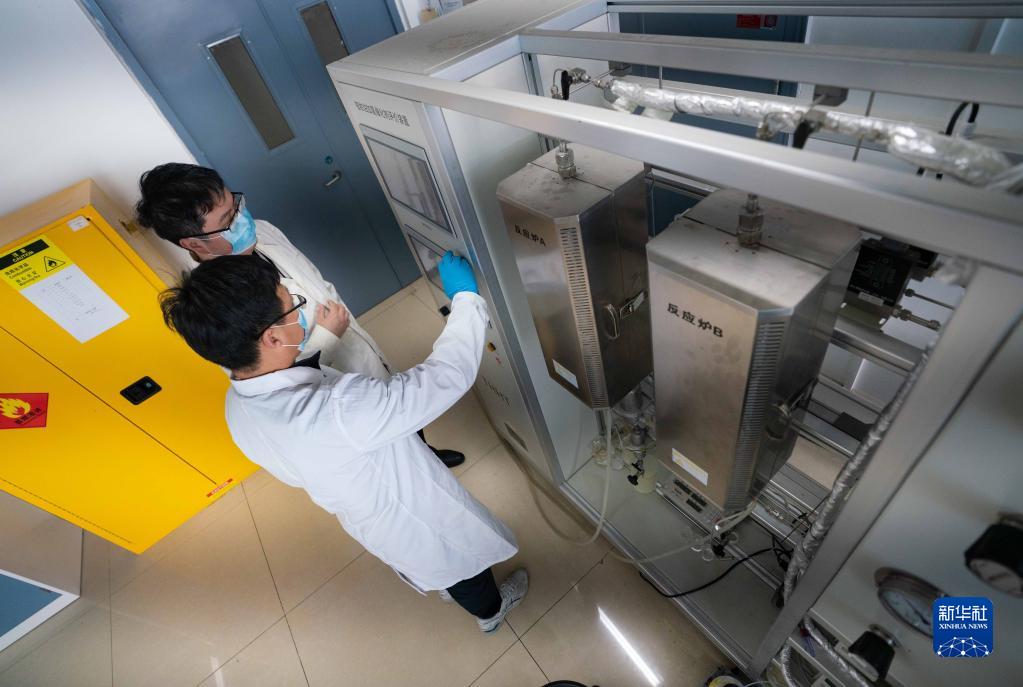 3月28日,南開(kāi)大學(xué)—滄州渤海新區綠色化工研究院課題組工作人員在調整新型航空煤油制取設備相關(guān)參數。