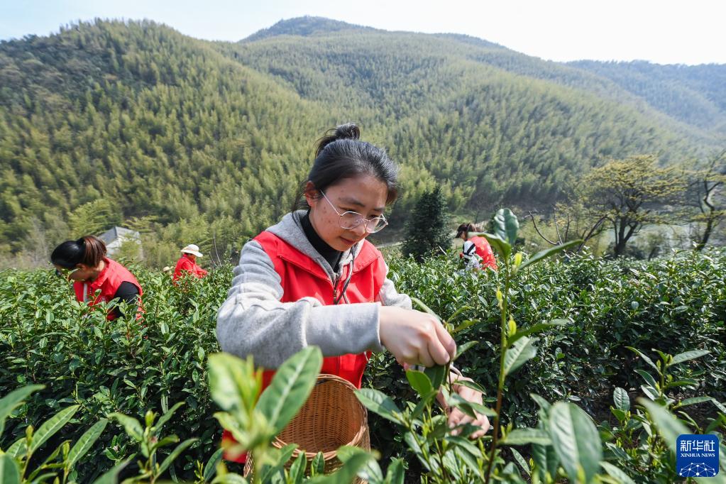 近期,隨著(zhù)氣溫升高,浙江省湖州市長(cháng)興縣小浦鎮大岕口村的數百畝春茶進(jìn)入了采摘期,當地組織共富工坊的黨員志愿者、“杏?!绷x工和鄉賢幫助低收入農戶(hù)采摘、加工春茶,解決人工短缺、銷(xiāo)路不暢等問(wèn)題,助農增收。
