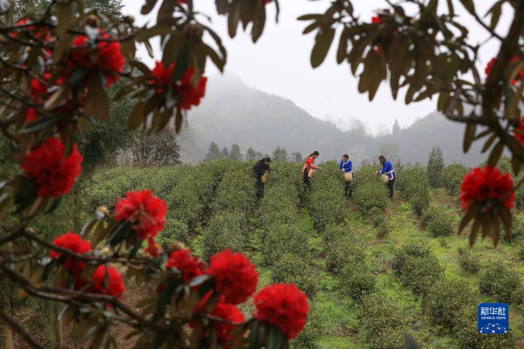 3月28日,茶農在貴州省畢節市百里杜鵑管理區一茶場(chǎng)采摘明前茶。
