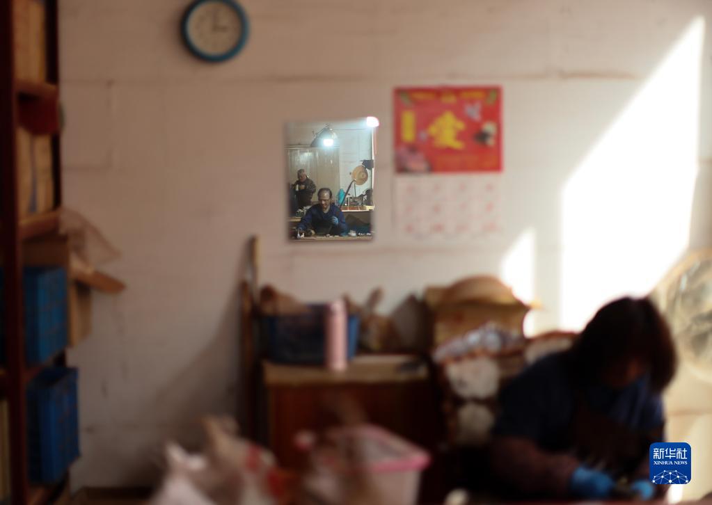 3月28日,在江蘇無(wú)錫梅村街道二胡產(chǎn)業(yè)園,工人在制作二胡。