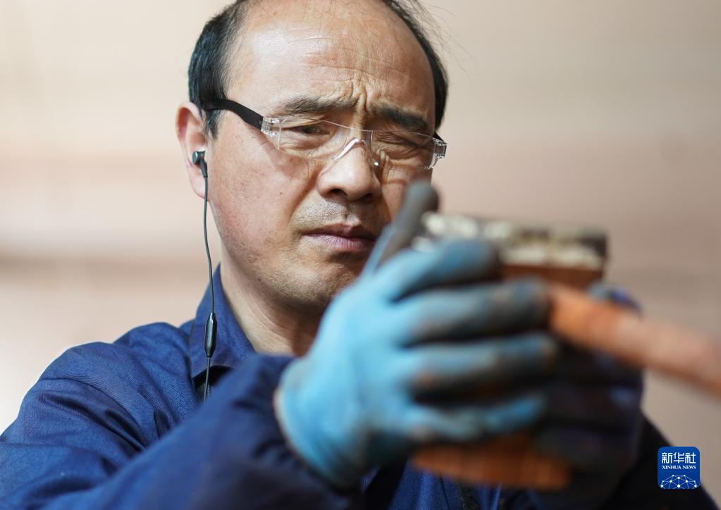 3月28日,在江蘇無(wú)錫梅村街道二胡產(chǎn)業(yè)園古月琴坊車(chē)間,工人在制作二胡。