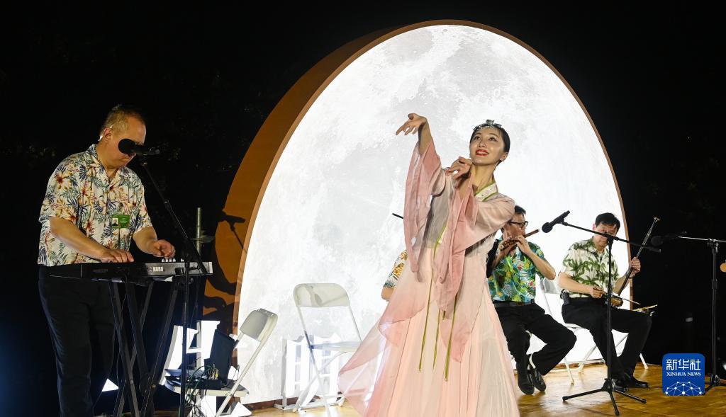 3月28日,演員在三亞創(chuàng )新發(fā)展主題展的“海上生明月”文化市集上表演。
