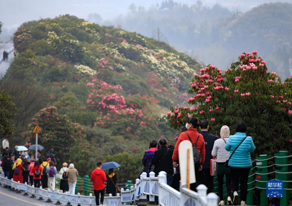 3月28日,百里杜鵑景區醉九牛景點(diǎn)附近杜鵑花盛開(kāi)。
