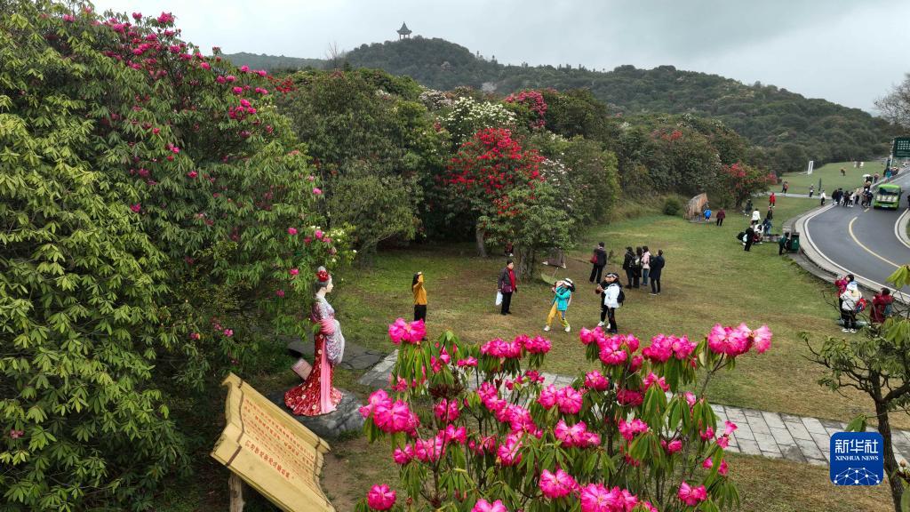 3月28日,游客在貴州省畢節市百里杜鵑風(fēng)景區賞花(無(wú)人機照片)。