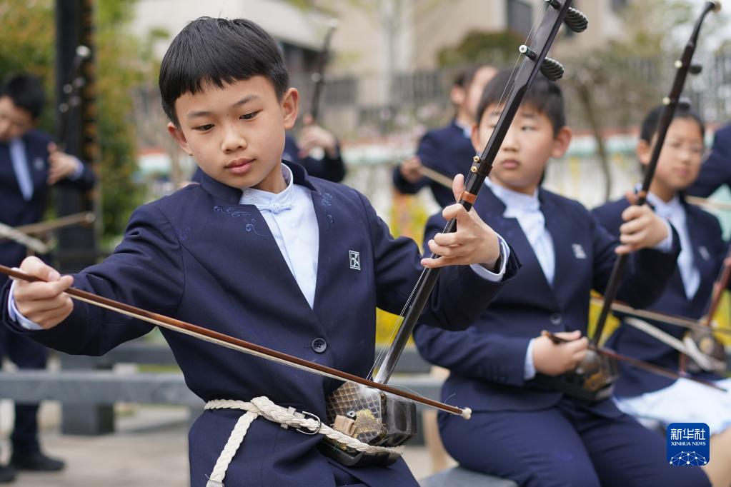 3月29日,江蘇無(wú)錫梅村實(shí)驗小學(xué)學(xué)生在練習二胡。