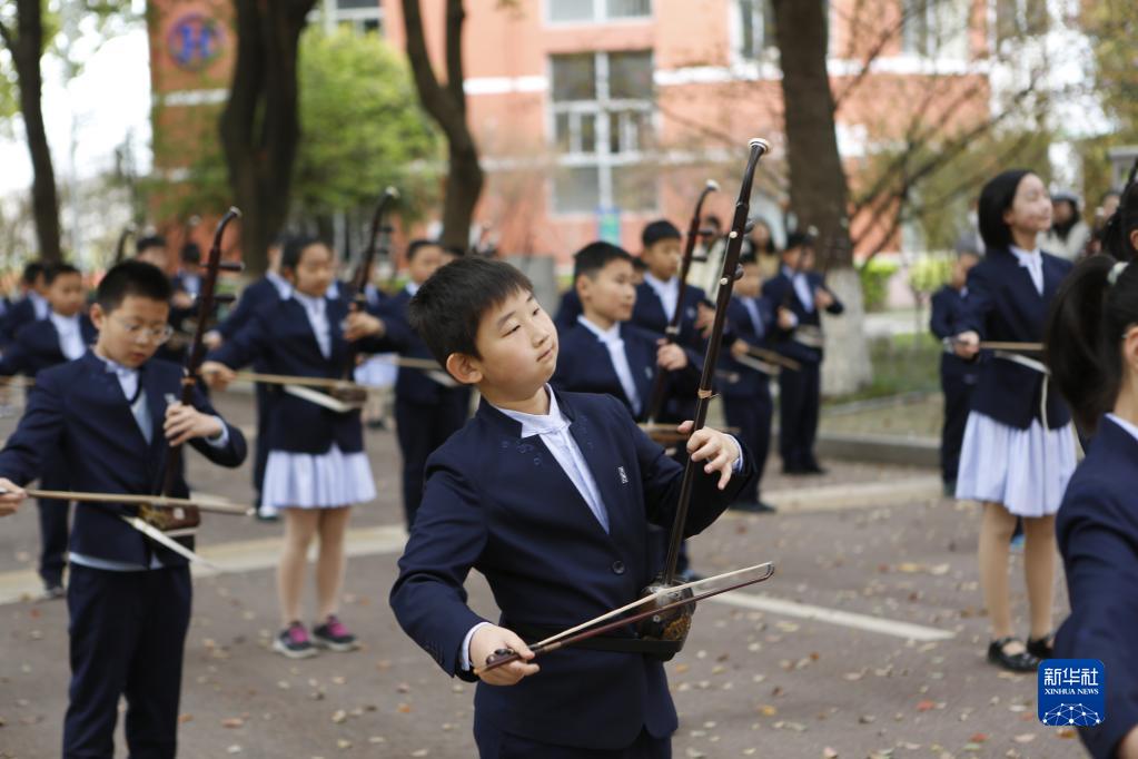 3月29日,江蘇無(wú)錫梅村實(shí)驗小學(xué)學(xué)生集體演奏二胡。