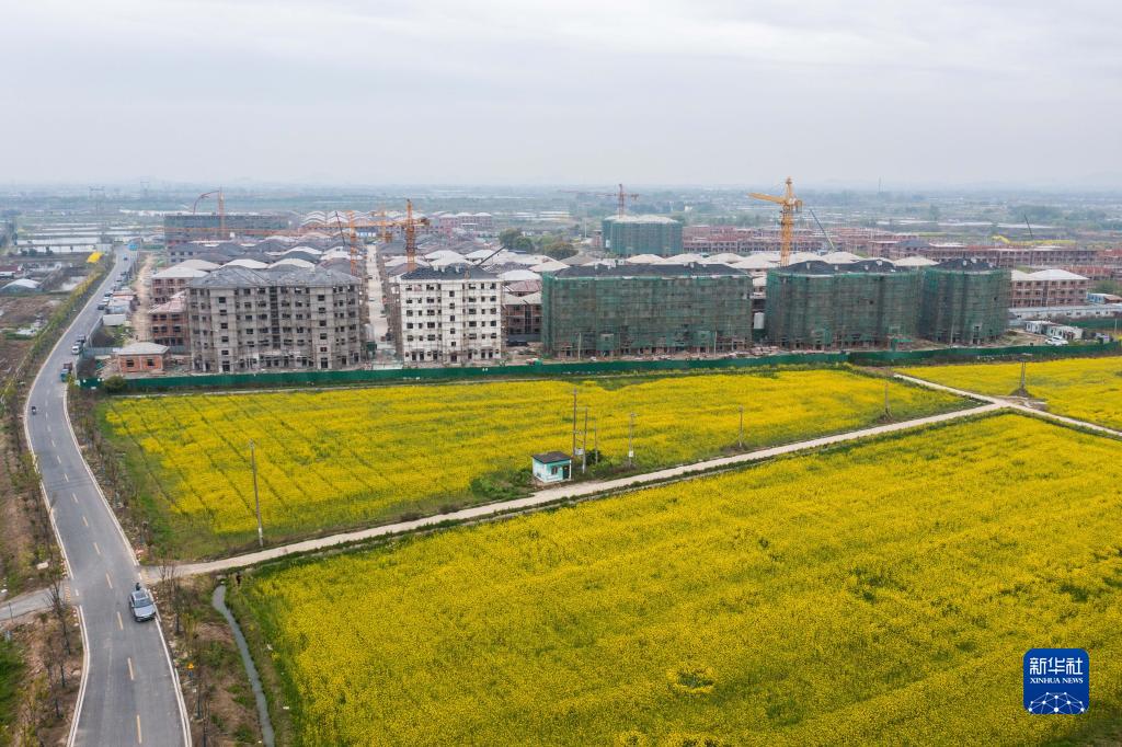 3月29日拍攝的浙江省湖州市東林鎮星群村經(jīng)過(guò)土地綜合整治后建成的高標準農田和正在建設的農民新村(無(wú)人機照片)。