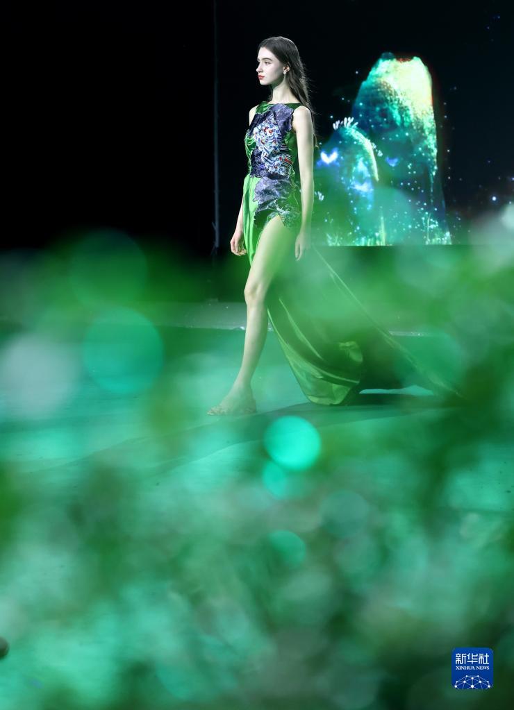 3月29日,模特在“綠色纖維制品可信平臺”發(fā)布會(huì )上展示可循環(huán)再利用的時(shí)裝。