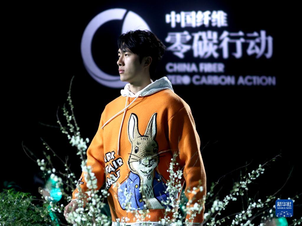 3月29日,模特在“綠色纖維制品可信平臺”發(fā)布會(huì )上展示可循環(huán)再利用的時(shí)裝。