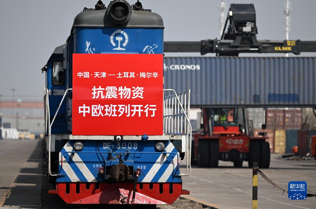 當日,中國鐵路北京局集團有限公司首趟天津至土耳其中歐班列從天津開(kāi)發(fā)區盛鐵物流有限公司專(zhuān)用線(xiàn)駛出。據了解,該班列裝載著(zhù)約1萬(wàn)頂抗震救援帳篷,將經(jīng)由阿拉山口鐵路口岸出境直達土耳其梅爾辛市。