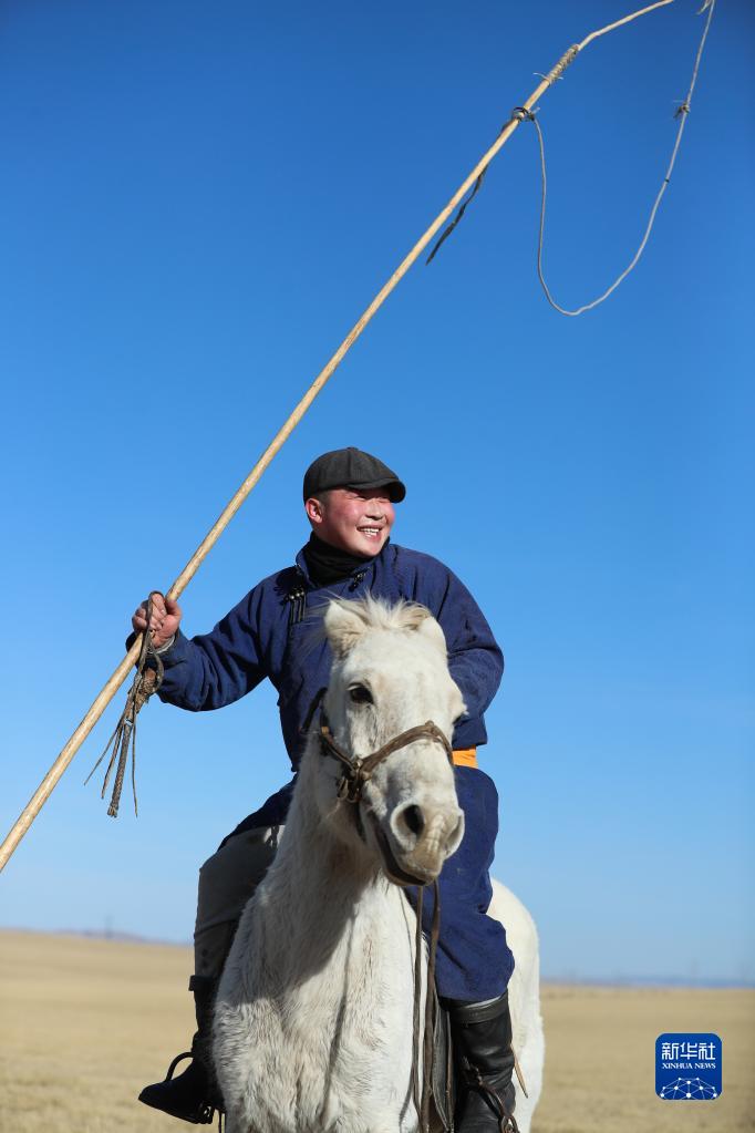 春日到來(lái),內蒙古錫林郭勒盟西烏珠穆沁旗天氣轉暖,當地牧民趕著(zhù)馬匹,來(lái)到草原上馴馬。