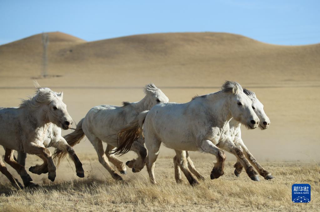 3月29日,馬群奔馳在錫林郭勒盟西烏珠穆沁旗的草原上。