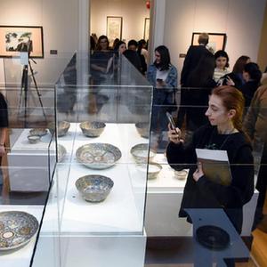3月29日,人們在位于阿塞拜疆首都巴庫的阿塞拜疆國家藝術(shù)博物館觀(guān)看中國藝術(shù)品專(zhuān)題展。