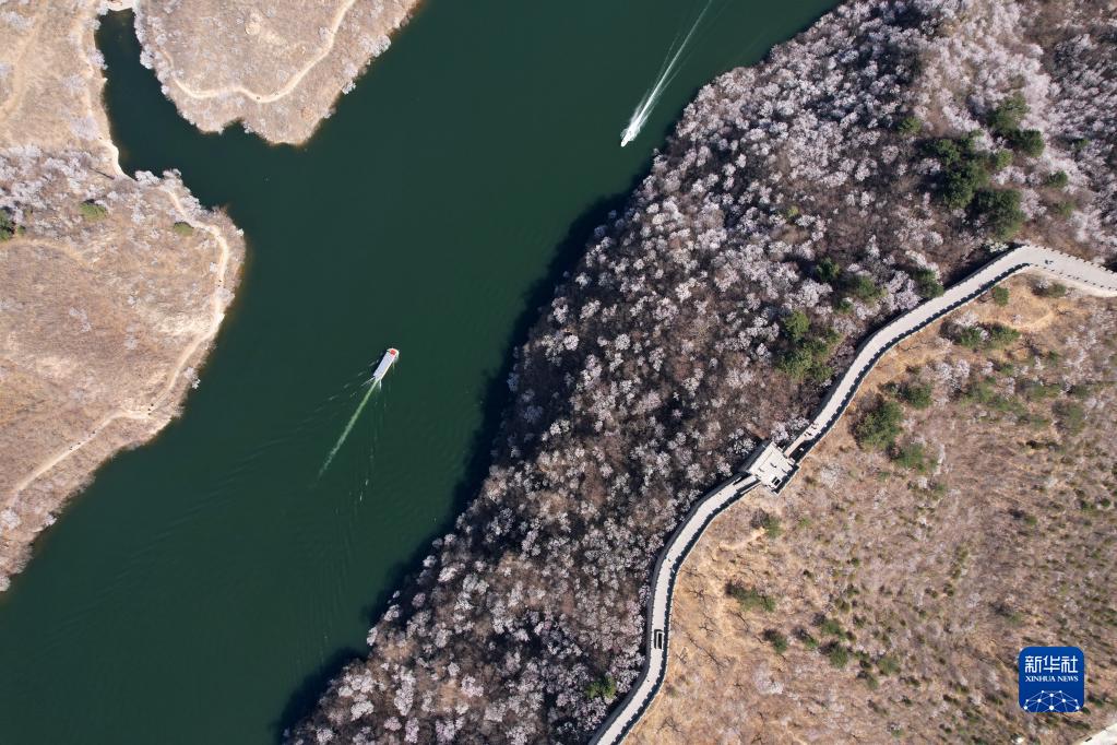 這是3月29日拍攝的黃花城水長(cháng)城(無(wú)人機照片)。