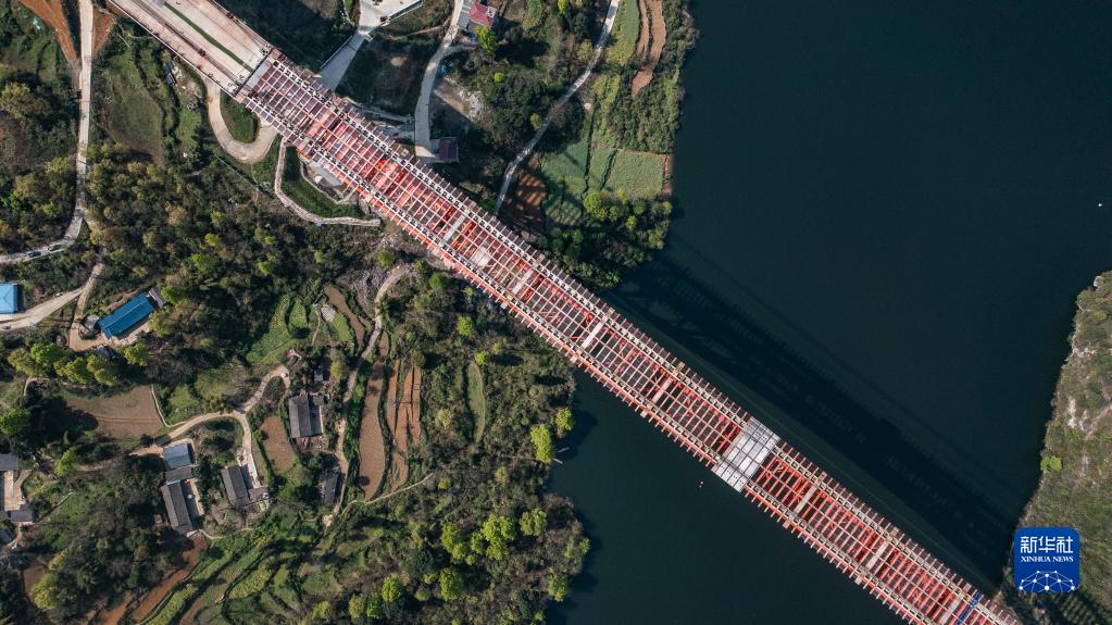 這是3月30日拍攝的德余高速烏江特大橋(無(wú)人機照片)。
