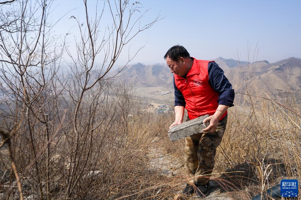 3月29日,柴繼志在搬運散落的長(cháng)城磚。