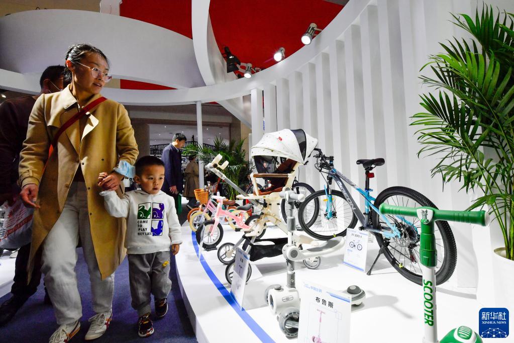 3月30日,觀(guān)眾參觀(guān)展出的兒童自行車(chē)等。