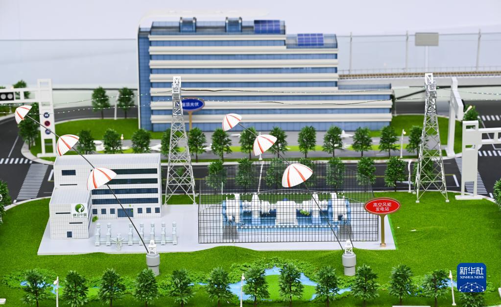 這是3月29日在“新能源 新基建 新產(chǎn)業(yè):綠色動(dòng)能 向新而行”展臺拍攝的高空風(fēng)能發(fā)電站模型。