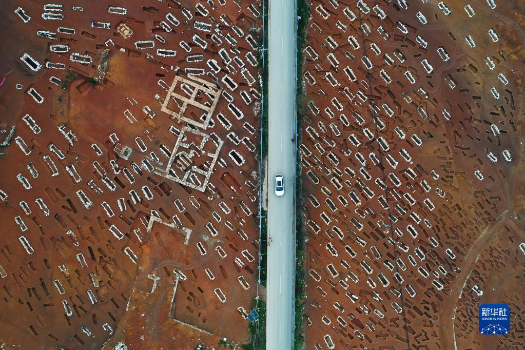 3月30日拍攝的貴州貴安新區大松山墓群挖掘現場(chǎng)(無(wú)人機照片)。
