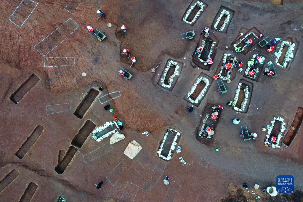 3月30日拍攝的貴州貴安新區大松山墓群挖掘現場(chǎng)(無(wú)人機照片)。