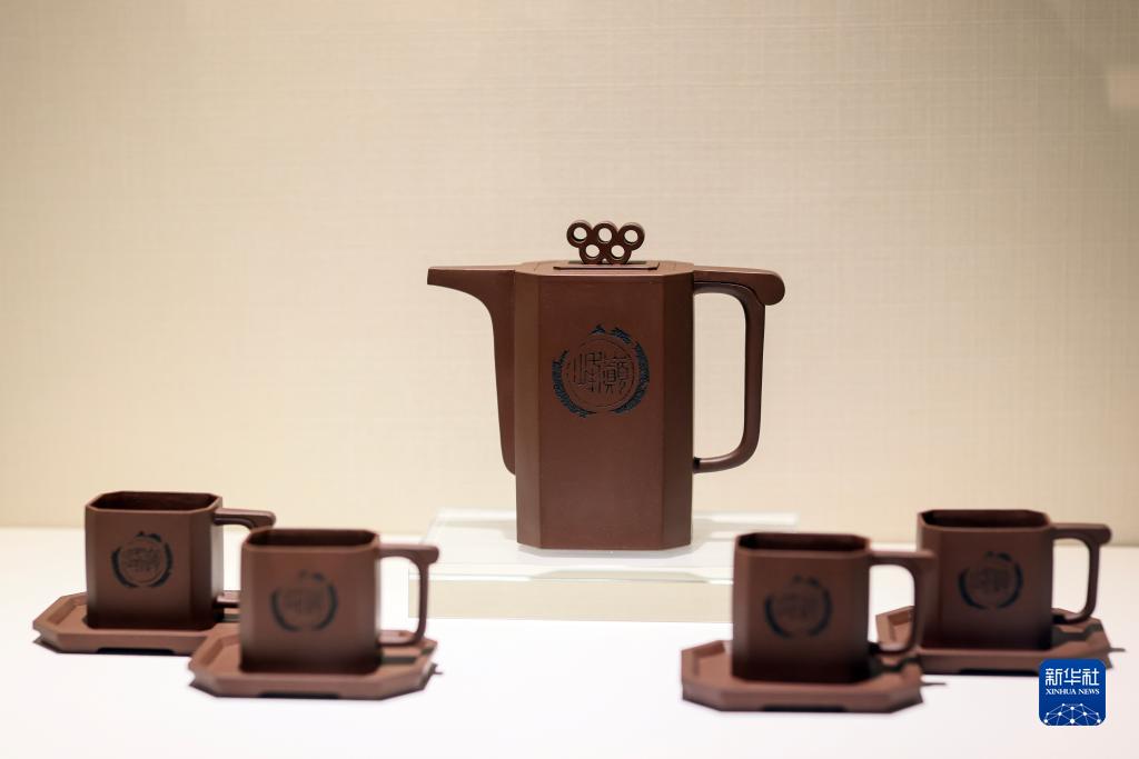 3月30日在江蘇宜興拍攝的曹婉芬作品“巔峰茶具”。