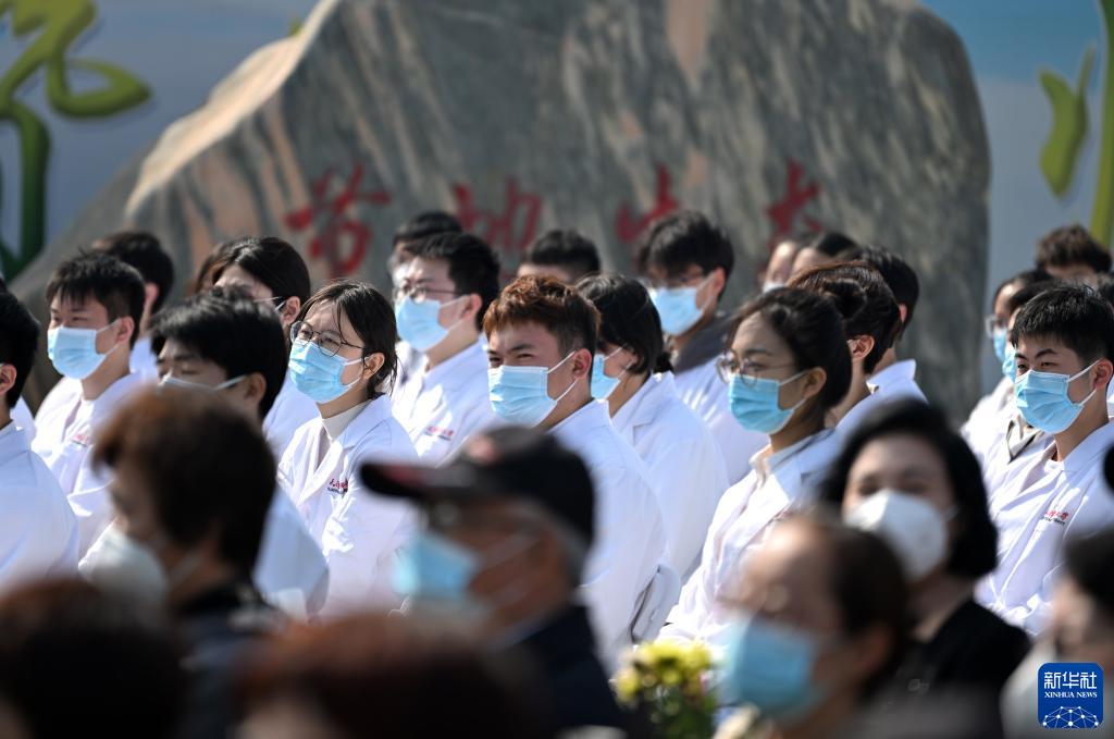 3月31日,在天津憩園,醫學(xué)生和遺體捐獻者家屬一起參加安葬儀式。