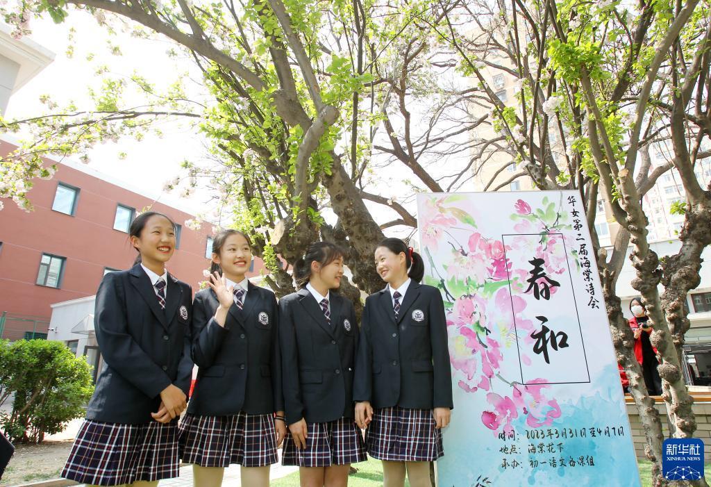 當日,北師大實(shí)驗華夏女子中學(xué)舉辦以“春和”為主題的第二屆“海棠詩(shī)會(huì )”。師生們選取有關(guān)“春天”“和煦”“生機”“美好”的詩(shī)歌,在校園的海棠樹(shù)下賞析吟誦,共享詩(shī)歌之美,傳承中華優(yōu)秀傳統文化。