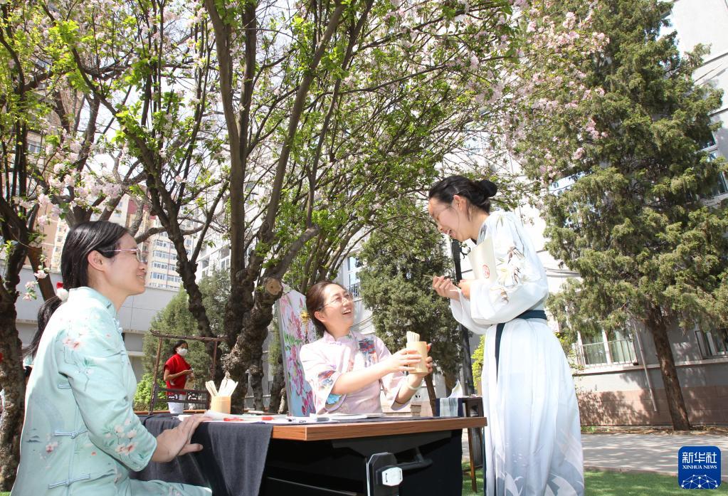 當日,北師大實(shí)驗華夏女子中學(xué)舉辦以“春和”為主題的第二屆“海棠詩(shī)會(huì )”。師生們選取有關(guān)“春天”“和煦”“生機”“美好”的詩(shī)歌,在校園的海棠樹(shù)下賞析吟誦,共享詩(shī)歌之美,傳承中華優(yōu)秀傳統文化。