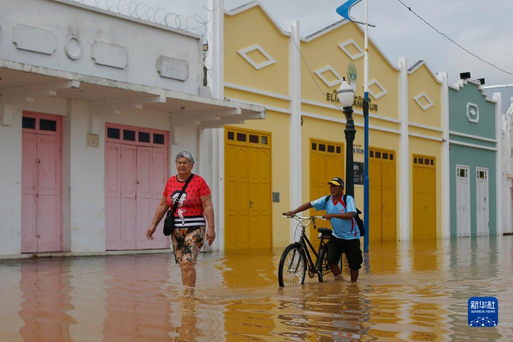 位于巴西西北邊境的阿克里州近期連遭暴雨引發(fā)洪災。由于支流水量暴增,阿克里河水位3月31日仍處高位。