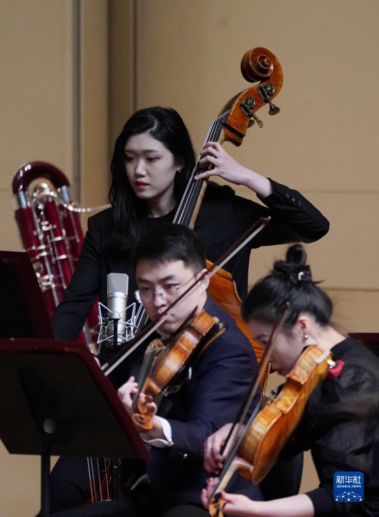 3月31日,中央音樂(lè )學(xué)院交響樂(lè )團的演員在演奏。