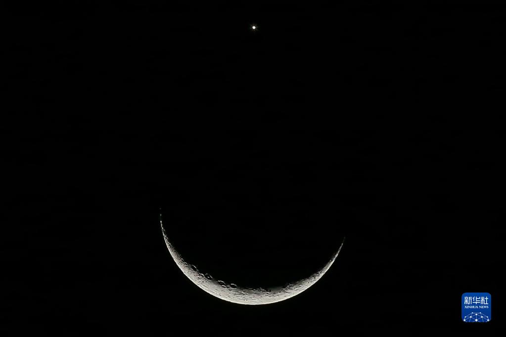 這是3月24日在菲律賓奎松城拍攝的月掩金星天象。
