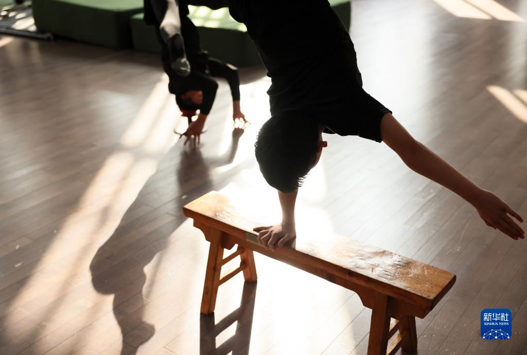 3月31日,演員們在位于江蘇省鹽城市建湖縣的江蘇省雜技團訓練。